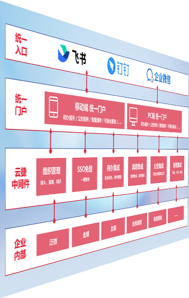 对协作平台提供支持服务,,支持企业应用与协作平台对接,,,,包含组织同步、、、消息集成、、、、待办集成等。。。支持目前主流的协作平台:钉钉、、、企微和飞书。。